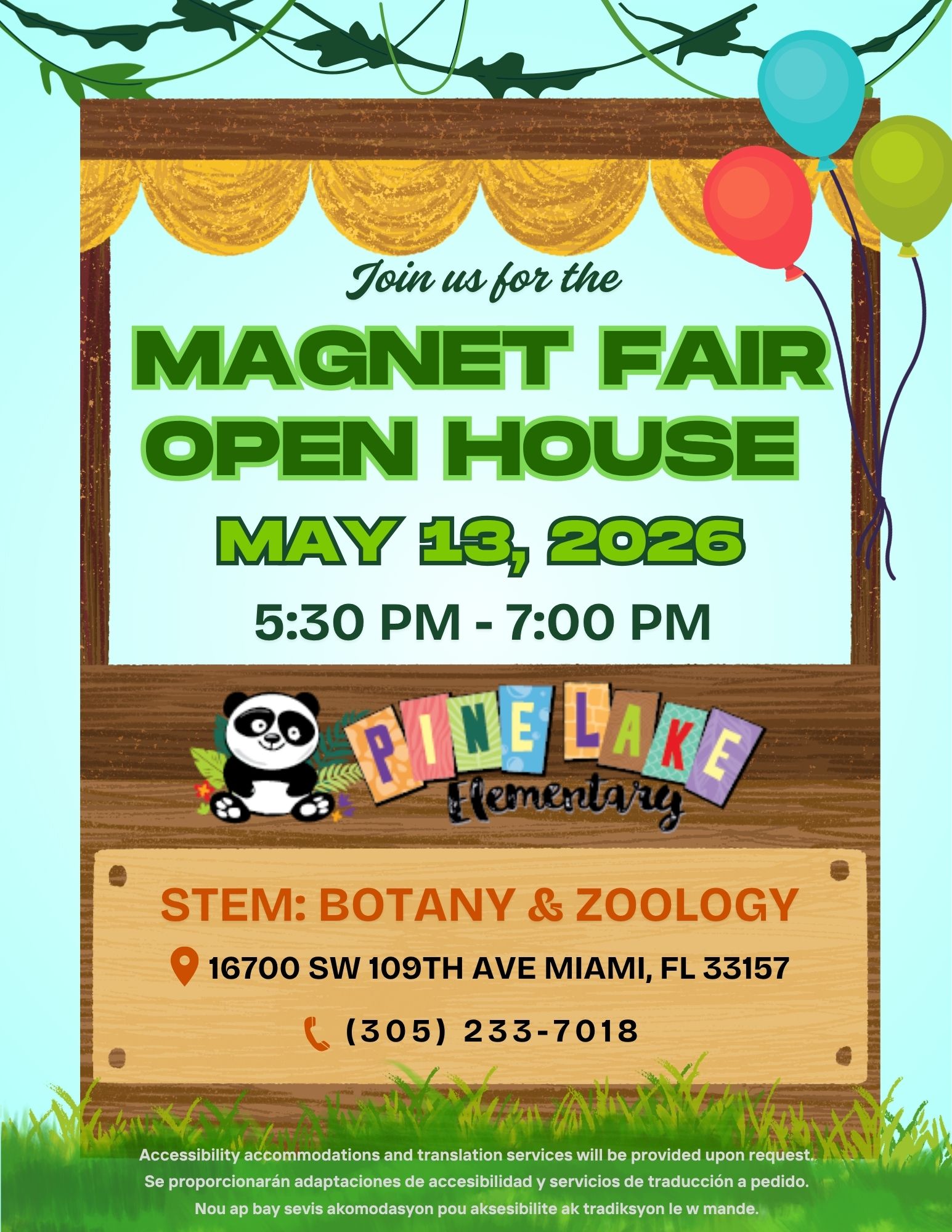 Pine Lake Elementary STEM: Botany & Zoology Magnet Program is designed to provide students with an exciting, hands-on, and challenging STEM curriculum focused on the study of Botany and Zoology. This innovative program brings the classroom to life through partnerships with Zoo Miami, Fairchild Tropical Botanic Garden, and the Everglades National Park. Students will be immersed in learning through hands-on science methods, real-world research opportunities, and applications of innovative learning strategies. The STEM: Botany & Zoology Magnet at Pine Lake Elementary aims to nurture forward thinking, action-oriented, highly skilled, problem solvers who will become global citizens working towards environmental sustainability.