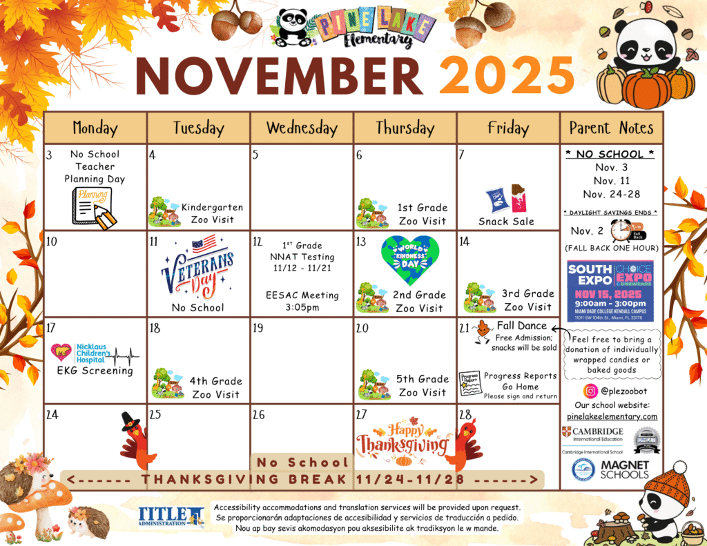 Stay informed with the latest events scheduled for Pine Lake Elementary School.